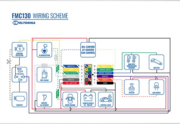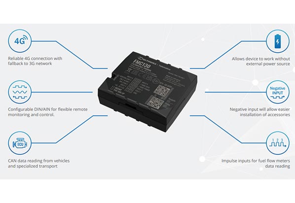 FMC130 es un terminal de rastreo en tiempo real pequeño y profesional con conectividad GNSS y LTE/3G/GSM y batería de respaldo. Dispositivo equipado con módulos GNSS/Bluetooth y LTE, GNSS interno, LTE antenas, digitales configurables, entradas analógicas y salidas digitales, entrada negativa, entradas de impulsos. Es perfectamente adecuado para aplicaciones en las que se necesita la adquisición de la ubicación de objetos remotos: gestión de flotas, empresas de alquiler de coches, empresas de taxis, transporte público, empresas de logística, coches personales y así sucesivamente